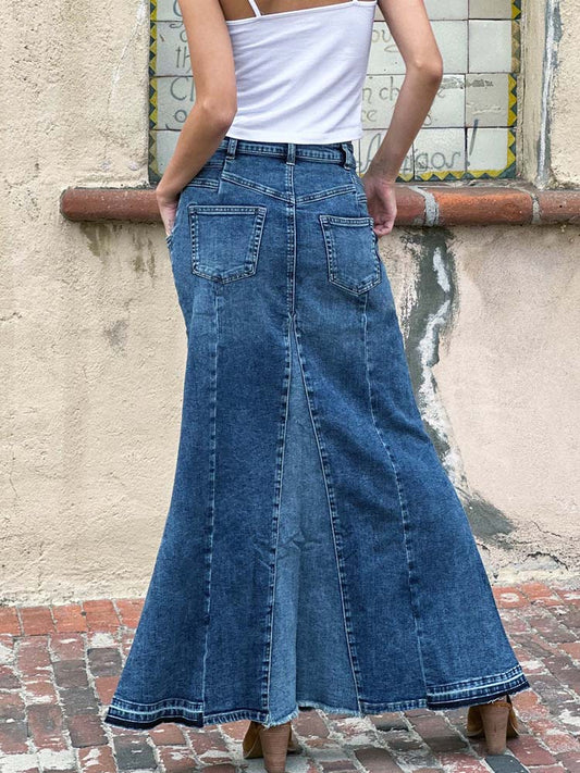 Gonna lunga svasata in denim di alta qualità, snellente e stretch