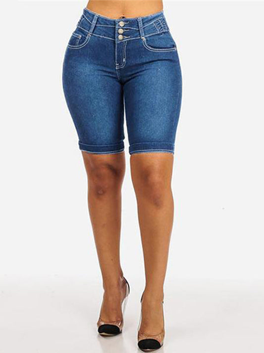 Jeans capri strappati Pantaloni capri in denim elasticizzato a vita media