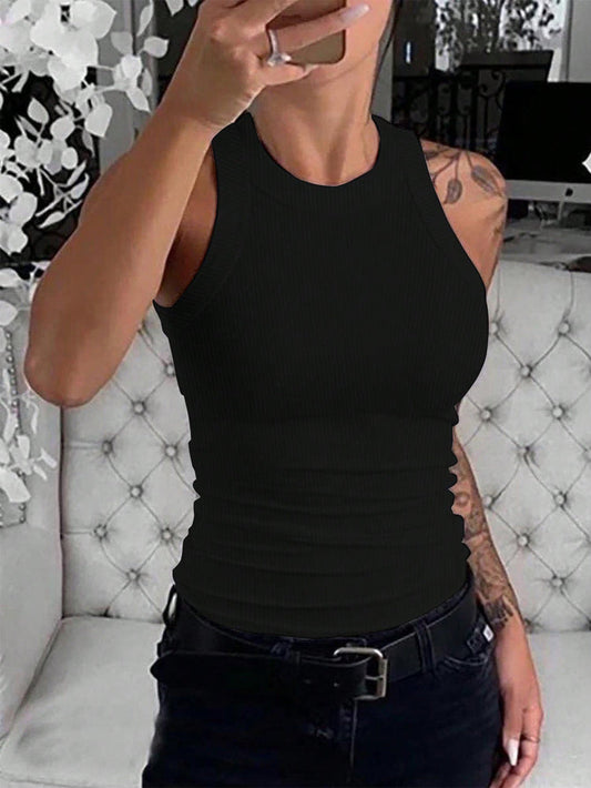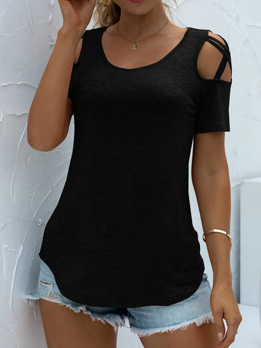 Top a maniche corte tinta unita con scollo a V e bottoni